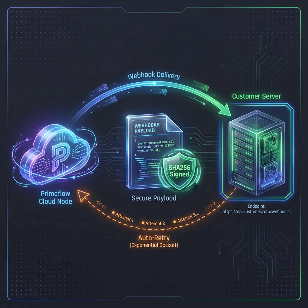 - Retries: Failed deliveries are automatically retried